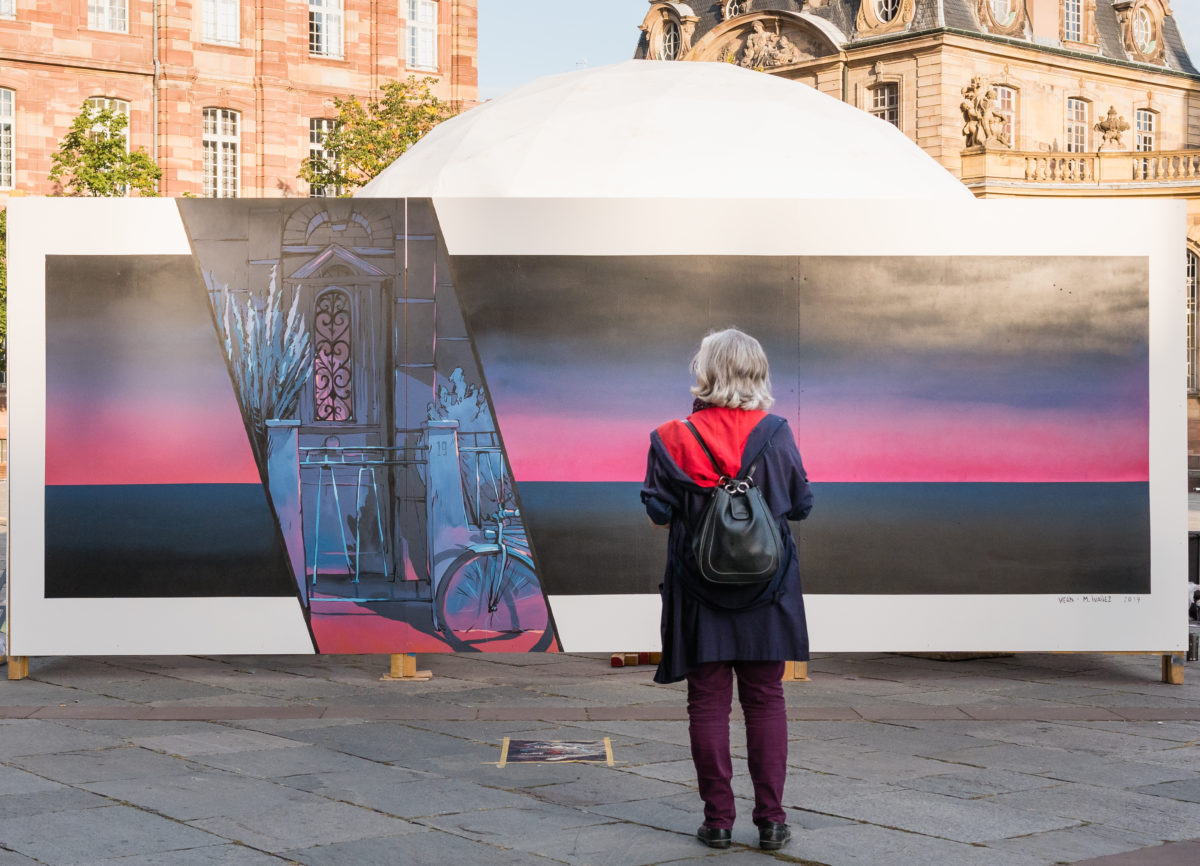 Sur l’idée originale de Stom500, le directeur artistique du festival, nous avions imaginé le temps du week end des Journées européennes du patrimoine 2019 un duo éphémère d’artiste pour réaliser deux oeuvres éphémères au pied de la cathédrale de Strasbourg : Kean x Maxime Ivanez