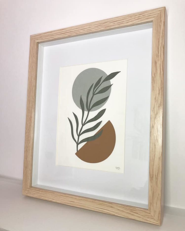 Passionnée par la peinture et la décoration depuis mon enfance, j’ai approché ces pratiques à travers la peinture en bâtiment, l’architecture et l’agencement. C’est grâce à cette diversité d’études que j’ai pu enrichir ma culture créative et affiner mon univers graphique. J’aime jouer avec les formes géométriques et végétales, les associations de couleurs et les différents matériaux. La peinture, le bois, le papier, le fil : j’aime quand tous ces éléments se répondent dans une même composition, en gardant une harmonie et une construction équilibrée, sobre et minimaliste. Je puise mon inspiration dans l’architecture, le mobilier, la décoration d’intérieur mais aussi la végétation. Les paysages urbains, les éléments d’architecture, de design d’espace et d’objets sont une véritable source d’exploration au quotidien. L’alliance des matériaux me demandent une adaptation continue, un défi que j’aime relever et qui m’anime. Actuellement graphiste freelance et artiste, j’aime explorer de nouveaux territoires et créer des compositions abstraites suivant mes nouvelles stimulations.