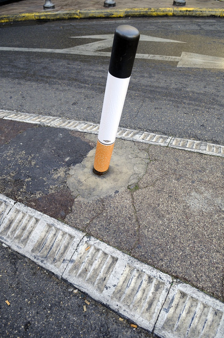 Homme de contradictions, de paradoxes, illusionniste mordu de la langue française, peintre d’anamorphoses Tabas a déjà installé des pipes dans une église, fait déplacer 30 000 mélomanes avec des affiches blanches ou designer des bouteilles d’une célèbre boisson anisée… Lorsqu’il investit la Villa Alliv pour un immense solo show marseillais, c’est pour y installer sa propre “Villa T-Moins”, un lieu décentré, comme “trouvé de l’autre côté du miroir” composé d’illustrations, de tapisseries, pièces de vaisselles, cendrier géant ou de traversins-cigarettes.
