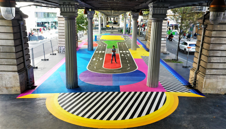 Depuis son retour à Paris, Tim partage son temps entre des projets institutionnels et des initiatives humanitaires. Il collabore avec la maison de luxe Hermès, la ville de Paris, réalise des expositions à Bogota, Mexico ou encore Bruxelles, et s’engage auprès des populations fragiles à travers le monde. Ainsi, il a repeint une école maternelle à Paris avec des jeunes de la protection de l’enfance, coloré les murs d’écoles colombiennes et mexicaines avec l’aide des minorités indigènes locales, financé et accompagné la rénovation d’une école dans les montagnes de l’Himalaya au Népal … Après avoir participé à l’échange organisé par Artivista au Brésil en 2018, Tim Zdey est parti en 2020 avec l’association peindre une fresque de 200m2 au coeur de l’université de Mossoul en Irak.